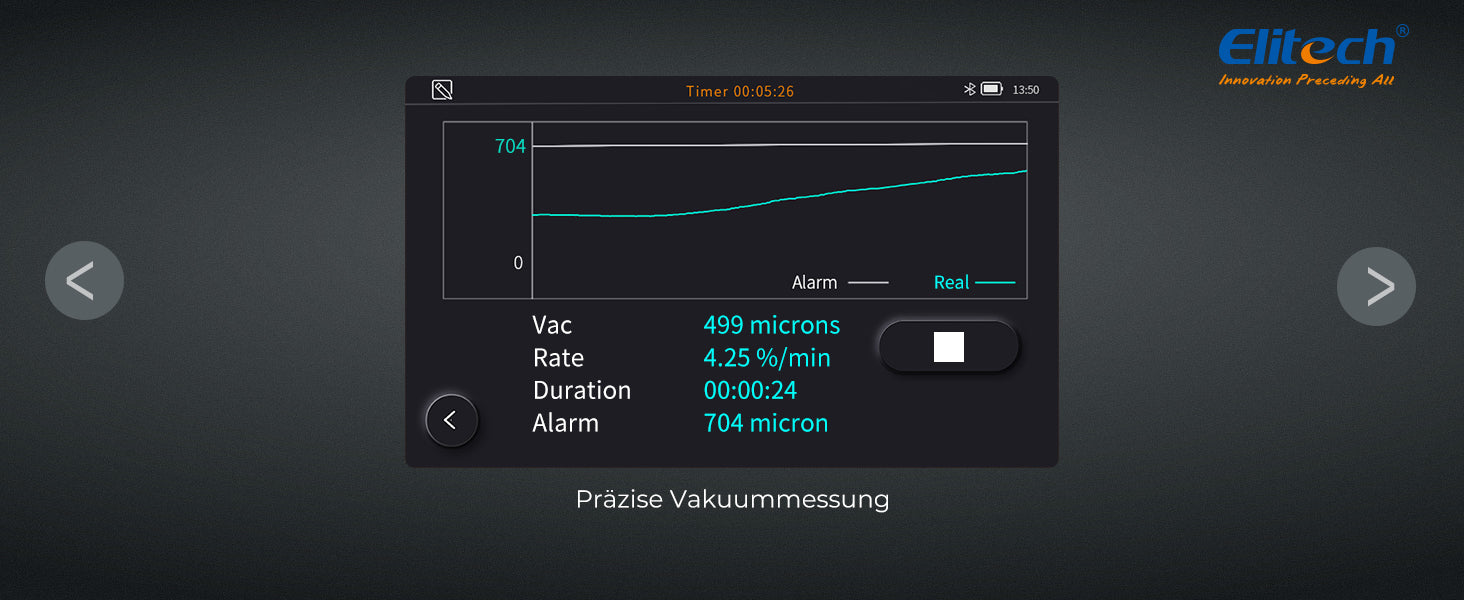 Präzise Überwachung des Systemvakuums mit Leckerkennung und integrierter Temperaturkompensation für einen genauen Druckhalteprozess.