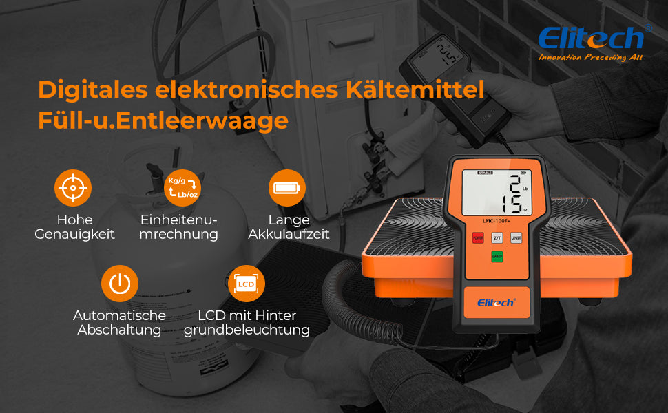 Elitech LMC-100F+ Kältemittelwaage digitale HVAC-Lade-Wiederherstellungs Waage 50 kg Auflösung 2 g