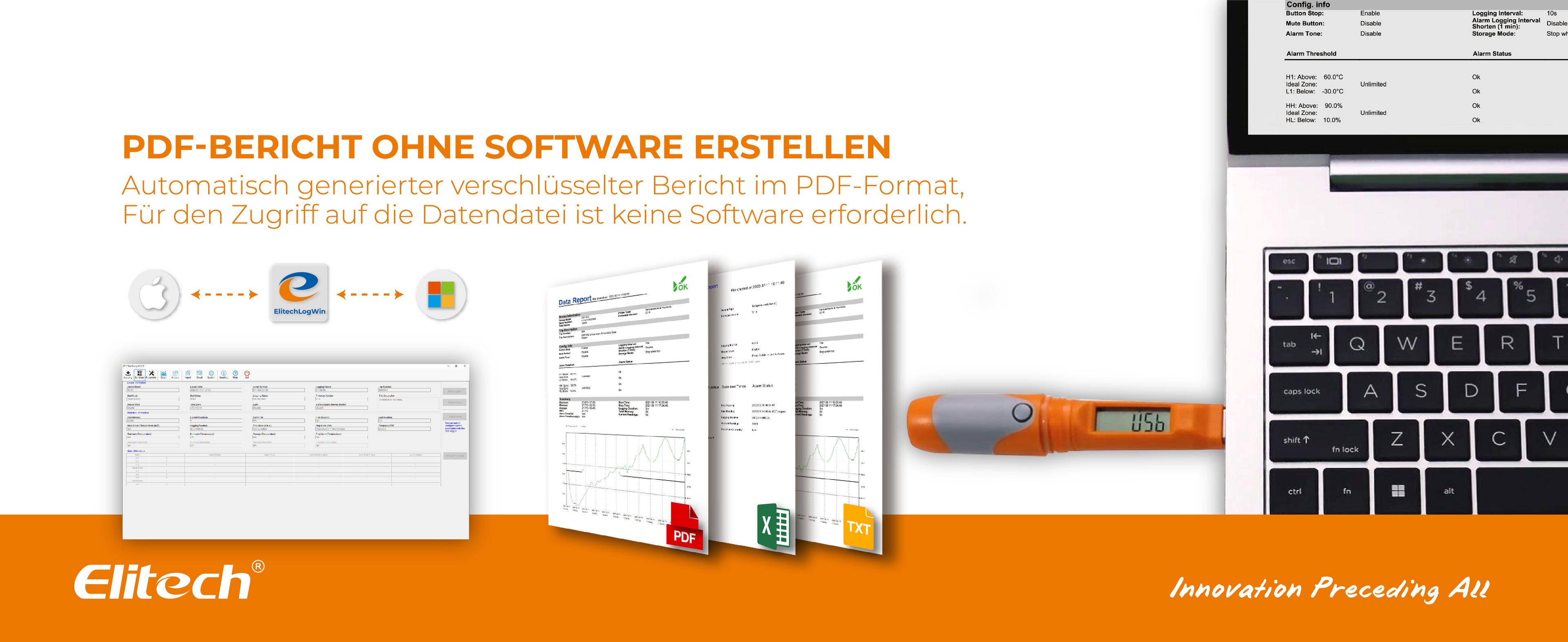 - Aufzeichnung und Export von Berichten mit großer Kapazität: 32.000 Aufzeichnungen für Temperatur, Support-Datenzyklus und Abdeckung. Automatische Generierung von PDF-Datenberichten ohne Software, Excel-Bericht ist über Software zugänglich.