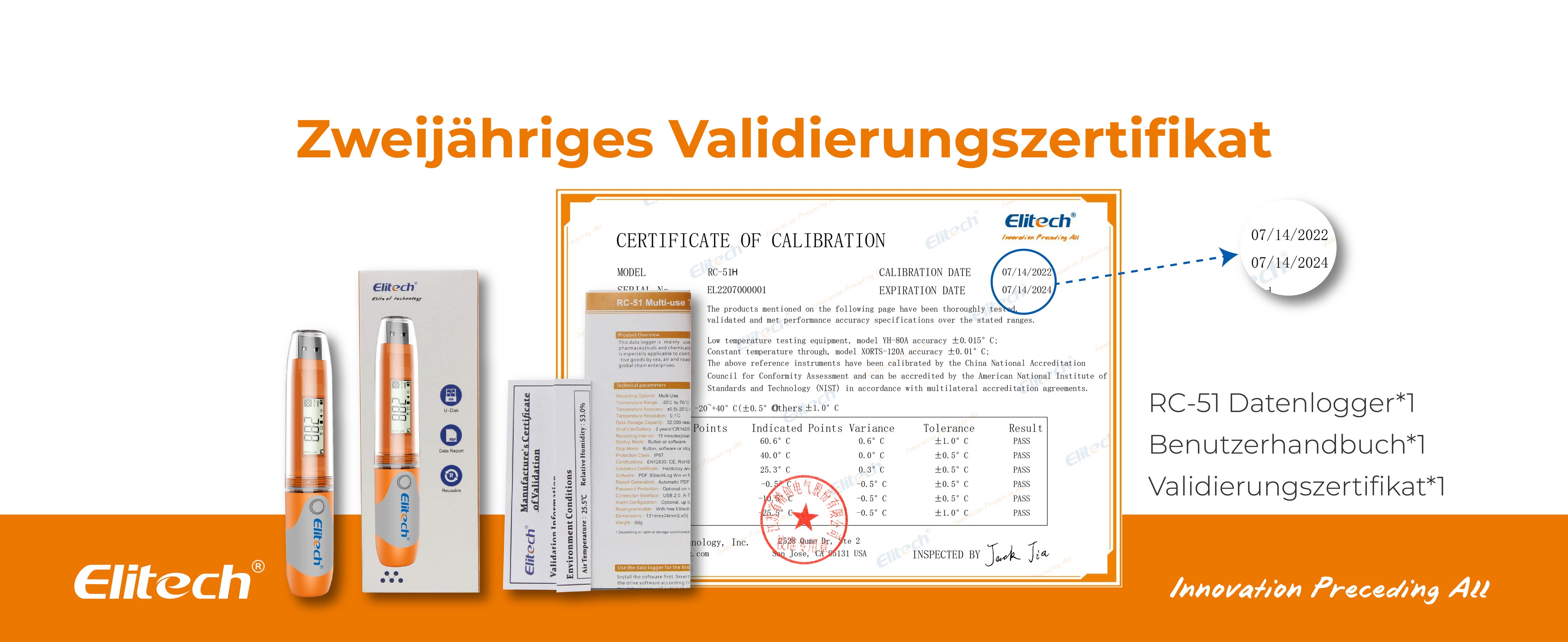 Der Temperaturdatenlogger RC-51 ist aufgrund seines transparenten, wasserdichten und sturzsicheren PC-Gehäuses langlebig und robust. Jedes Teil wird einer strengen Qualitätsprüfung gemäß den FDA- und CE-Standards unterzogen.