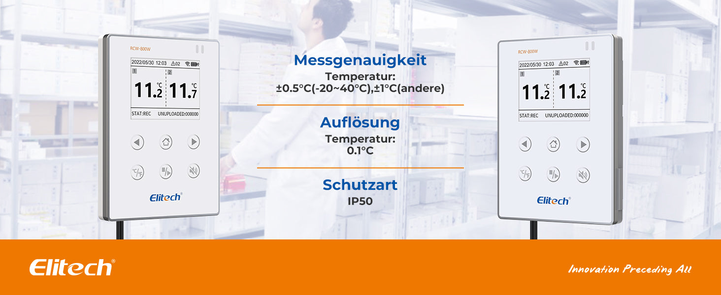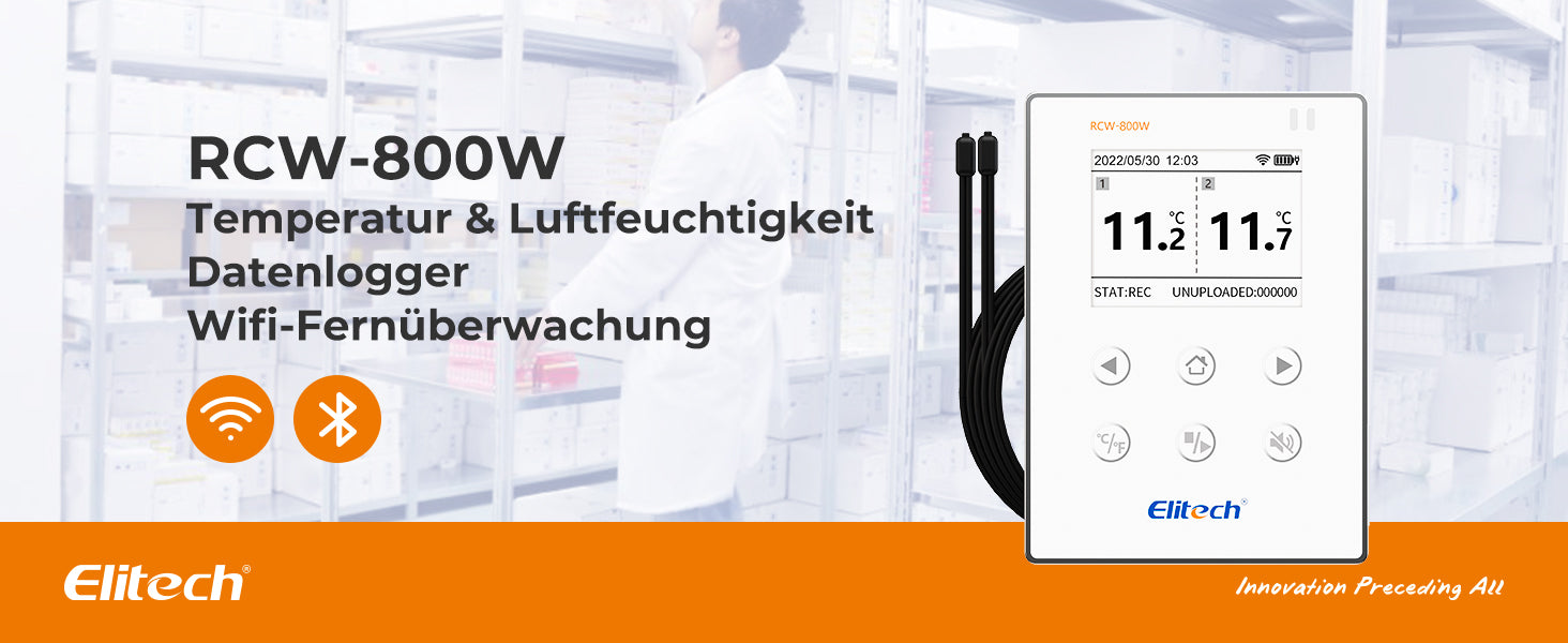 Elitech RCW-800W-TDE Drahtloser Temperatur Datenlogger, WIFI-Ferntemperatur Rekorder für Kühlschrank