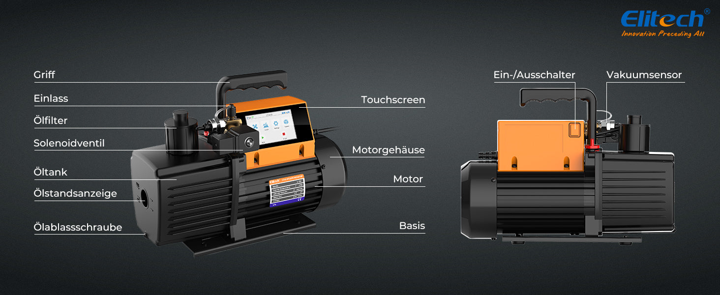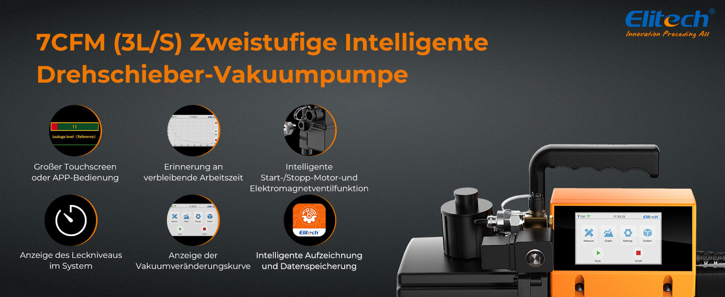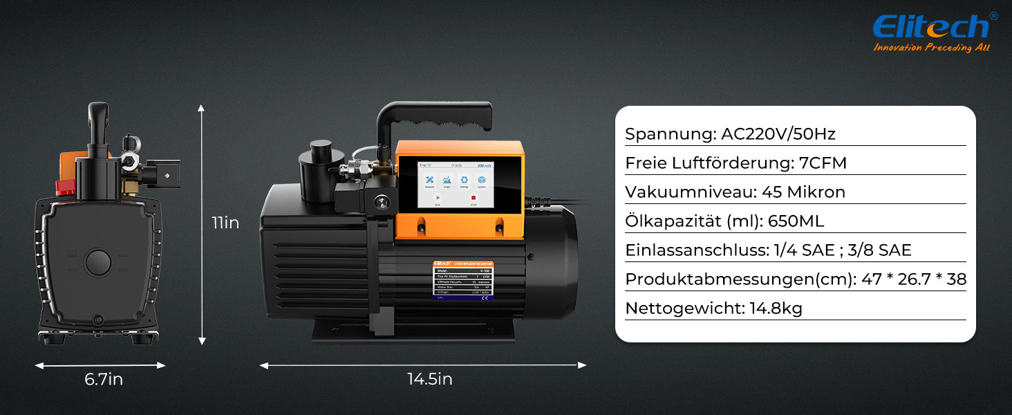 Elitech V700 220 V Intelligente 2-Stufen-Vakuumpumpe, 7 CFM, 3 l/s, APP-Steuerung, Datenprotokollierung, intelligente Steuerung