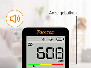 Die Farbcodierung und der optionale Alarm geben eine Warnung aus, wenn die CO2-Konzentration zu hoch wird.